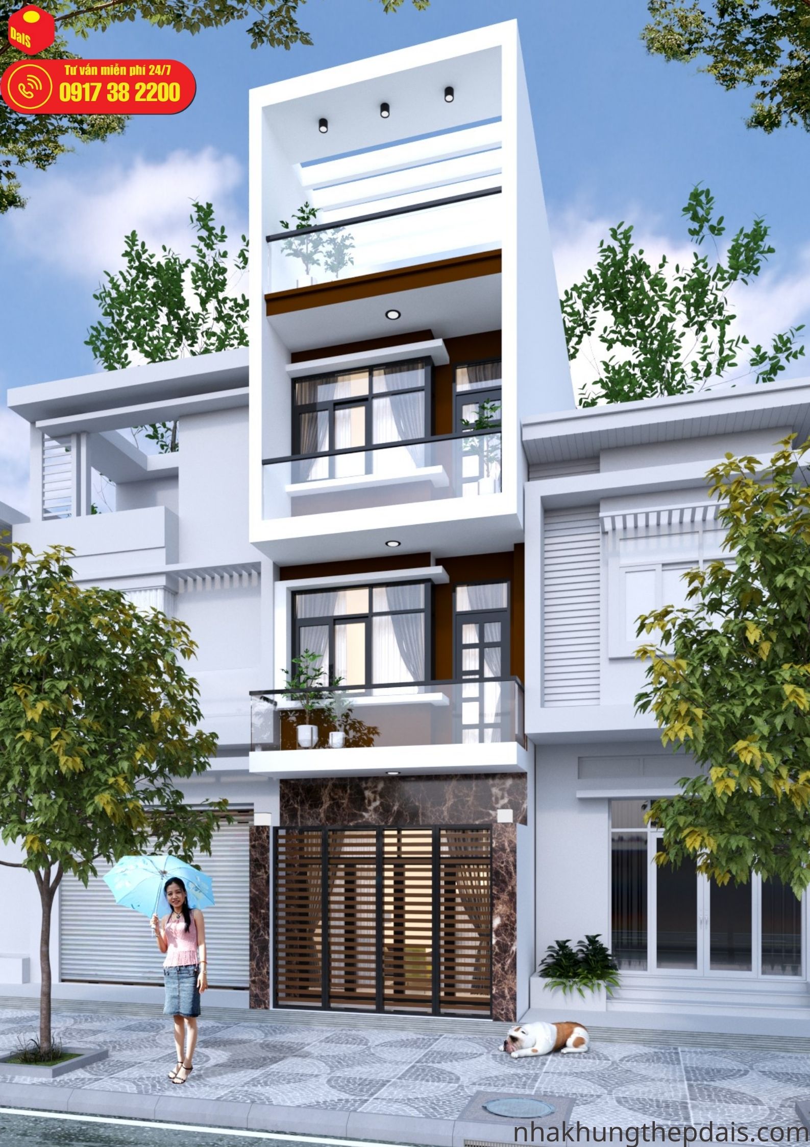Ví dụ: ta muốn xây dựng một ngôi nhà có diện tích 50 m2, 4 tầng 1 tum , và một sân phơi