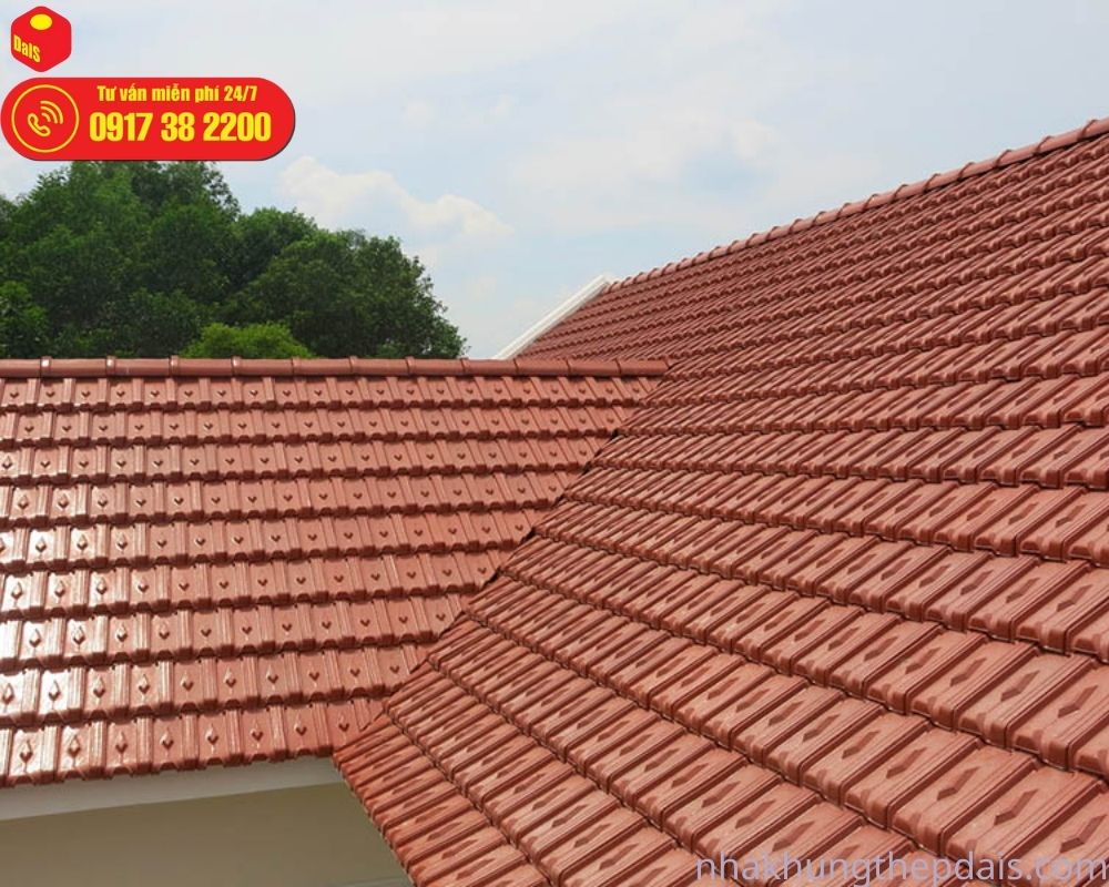 Loại mái nhà này có trọng lượng khá nhẹ so với nhiều dạng khác nhau như sóng vuông, sóng tròn, tôn giả ngói cho bạn lựa chọn.